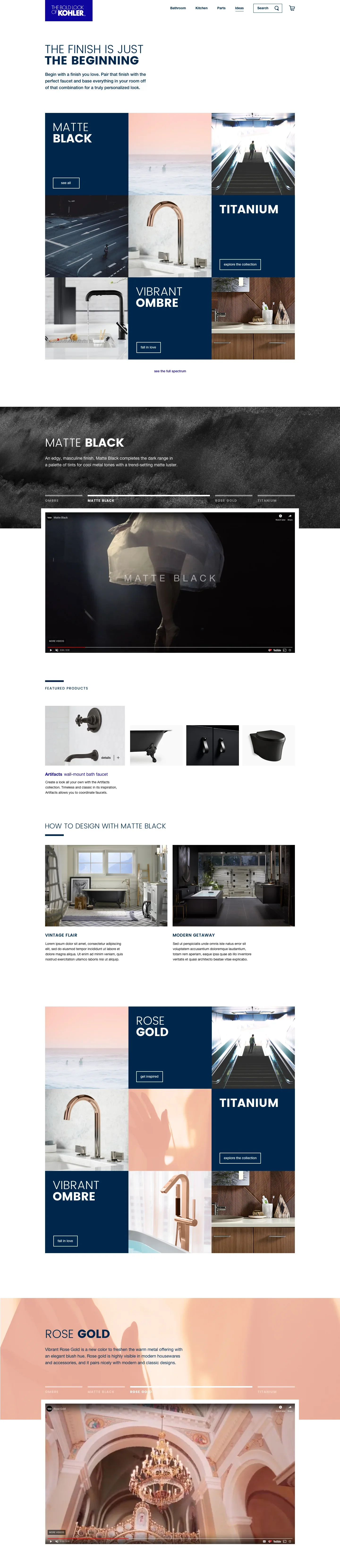 Kohler set out to showcase the breadth of their products and how they live within the home. Through the narrative framework Form, Function, Finish we brought clarity and scalability to the journey, helping users explore with intention. By spotlighting Kohler’s interior designers throughout the experience, design expertise becomes both a service and a signal of leadership. Inspiration is positioned as an integral part of the brand.